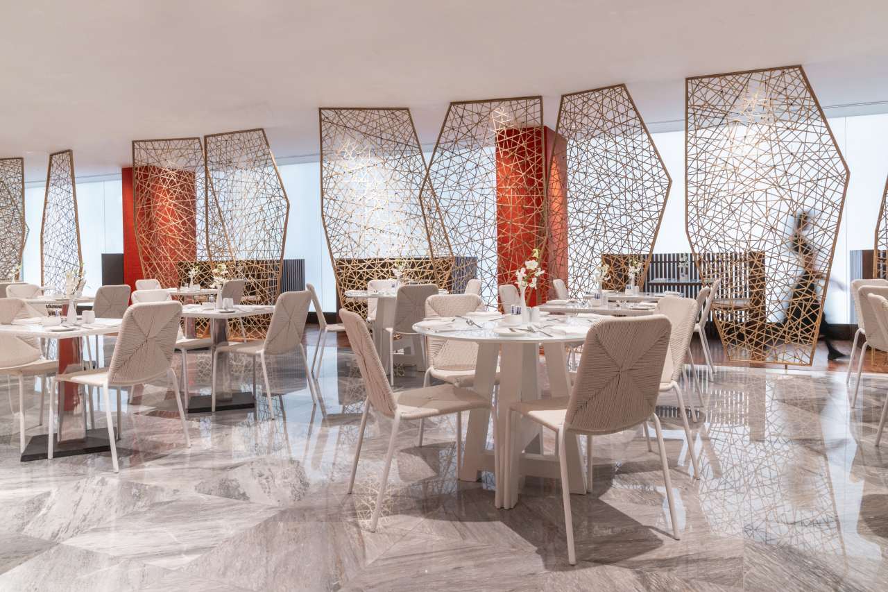 Die Neugestaltung des COMO Metropolitan Bangkok, einschließlich aller 137 Zimmer und Suiten, übernahm die italienische Designerin Paola Navone. Es ist ihr zweites Projekt in Thailand für COMO Hotels and Resorts und ergänzt das Inselresort COMO Point Yamu auf Phuket. Navone verbindet ein feines Gespür für den Ort mit zeitgemäßem Design, ohne auf kulturelle Klischees zurückzugreifen. Holz, Keramik und Stein treffen auf moderne Formen und lebendige Farbakzente, darunter warme Orange- und Ockertöne, die an die buddhistische Farbpalette erinnern. Auch Marmor entfaltet durch das Spiel von Licht und Schatten besondere Tiefe und Lebendigkeit. Die Rezeption ist aus Stein, dessen feine Reliefs an traditionelle thailändische Mauerwerke und Tempel erinnern. Darüber spannt sich eine geflochtene Bambusdecke, die an klassische thailändische Sonnenschirme angelehnt ist und das tropische Licht sanft filtert.